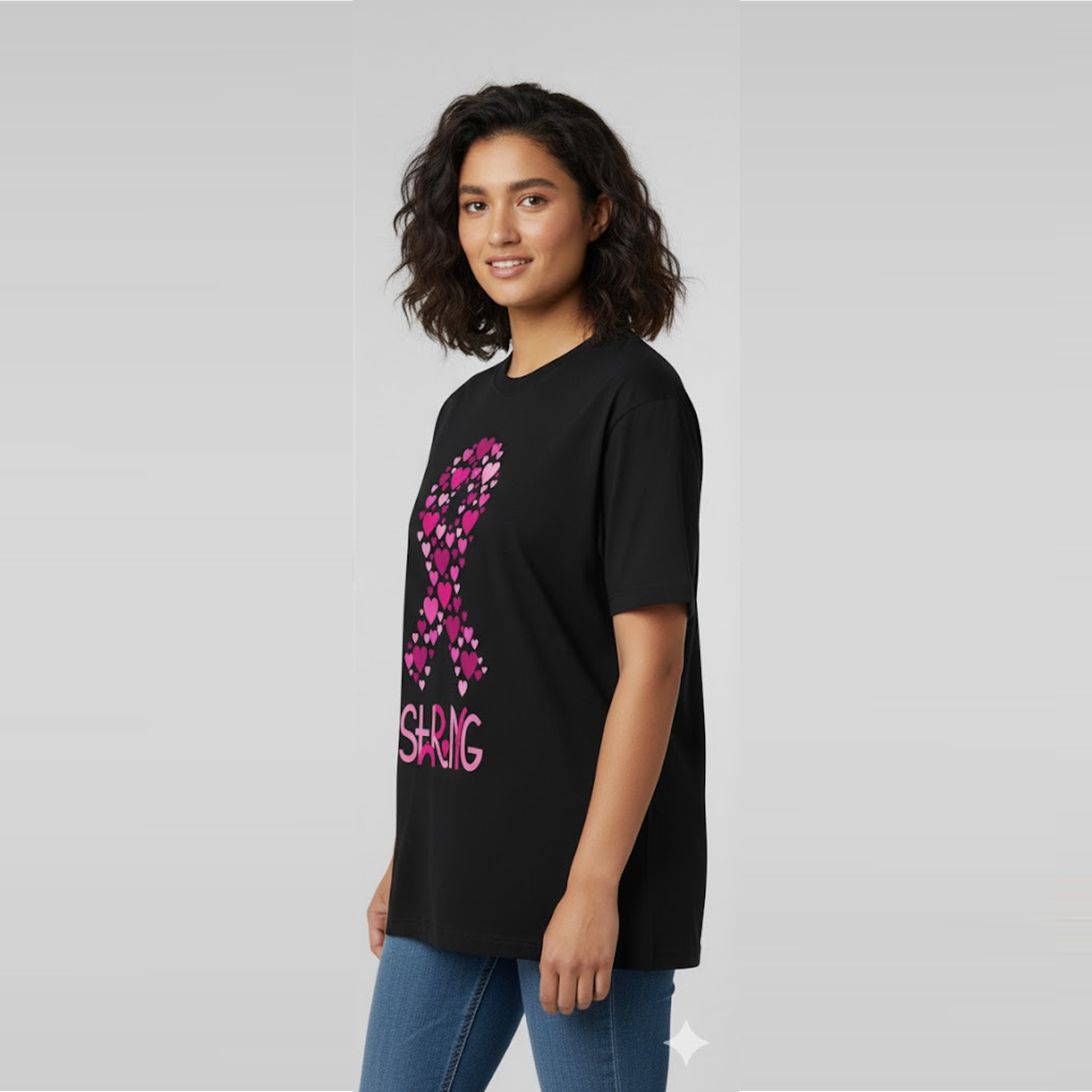Unisex Soft Pure Cotton Black Round Neck Oversized Breast cancer awarenes Printed T-shirt